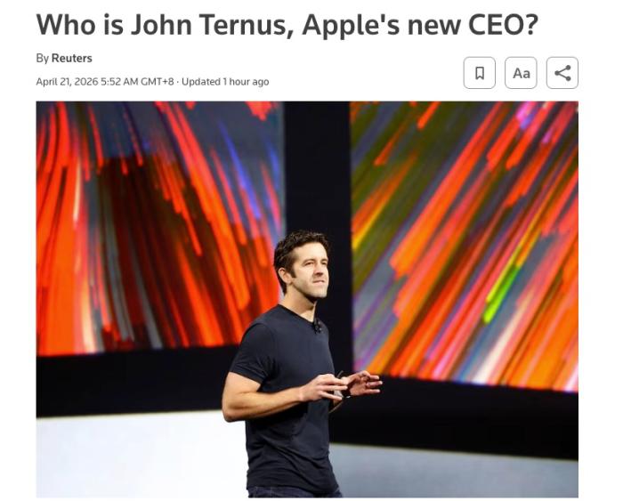 4月21日电 据道透社报导,苹果公司20日宣告,录用里面下管、历久卖力硬件生意的约翰·特纳斯为停1任尾席施行民,代替自2011年此后连续治理公司的蒂姆·库克。