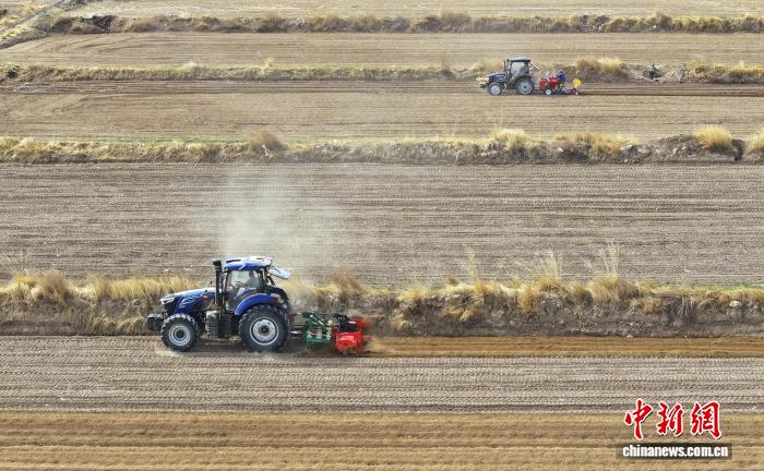 图为1体化收获机正正在实行收获功课。王晓泾 摄